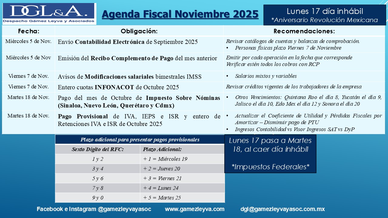 https://elconta.mx/wp-content/uploads/2025/11/2025-11_agenda_fiscal_laboral_seguridad_social-1.jpg7201280CPC Francisco Gamez Poncehttps://elconta.mx/wp-content/uploads/2025/08/elcontamx-logo_desde_2009.pngCPC Francisco Gamez Ponce2025-11-10 10:35:312025-11-10 09:12:08NOVIEMBRE 2025. Agenda de Obligaciones Fiscales, Laborales y de Seguridad Social.